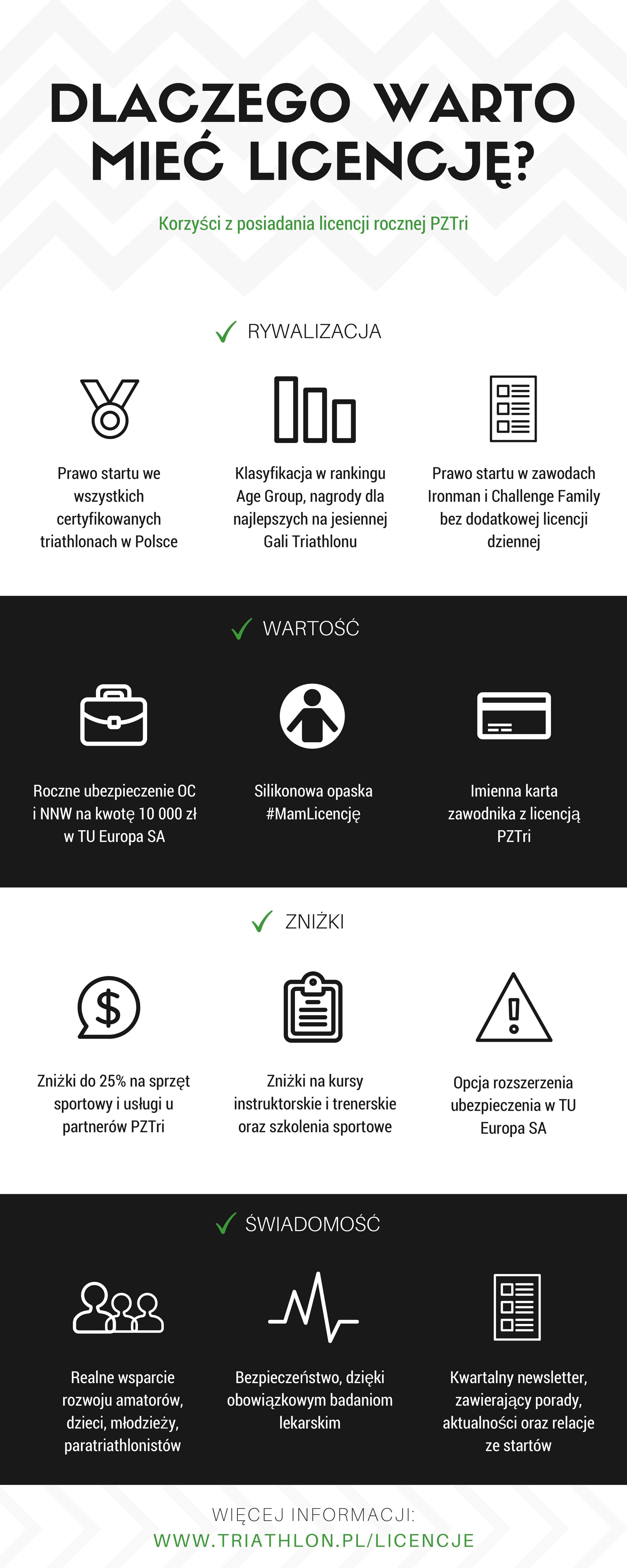 przez PZTri. Zawodnicy posiadający roczną licencję klasyfikowani będą również w ogólnopolskim rankingu Age Group (po ukończeniu co najmniej 3 partnerskich imprez PZTri), zaś najlepsi będą nagradzani na dorocznej gali Polskiego Triathlonu na jesieni. Posiadanie rocznej licencji jest również niezbędne w celu dopuszczenia do startu w zawodach rangi Mistrzostw Polski, a także pełni funkcję licencji krajowej i zwalnia z dodatkowych opłat licencyjnych na imprezach typu Ironman czy Challenge Family.