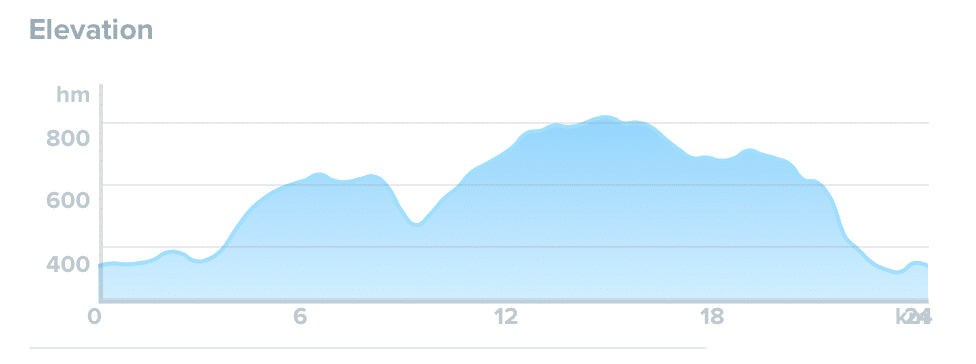Profil trasy biegowej dystansu Dzień Sądu (1/2 IM, 24 km biegu):